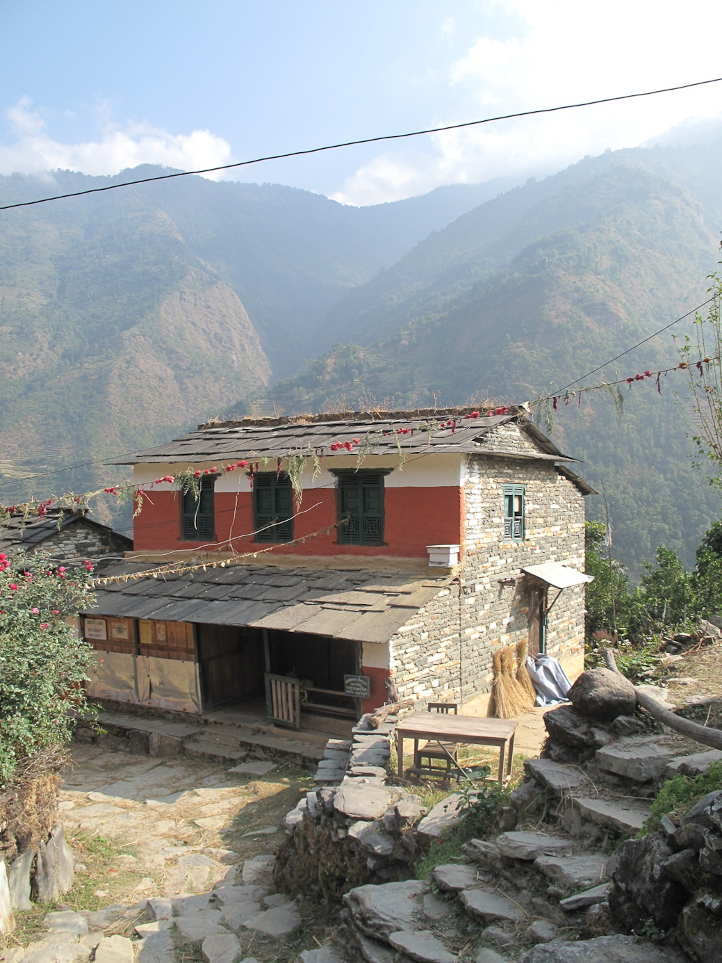 Les maisons sont en pierre, avec une gallerie couverte