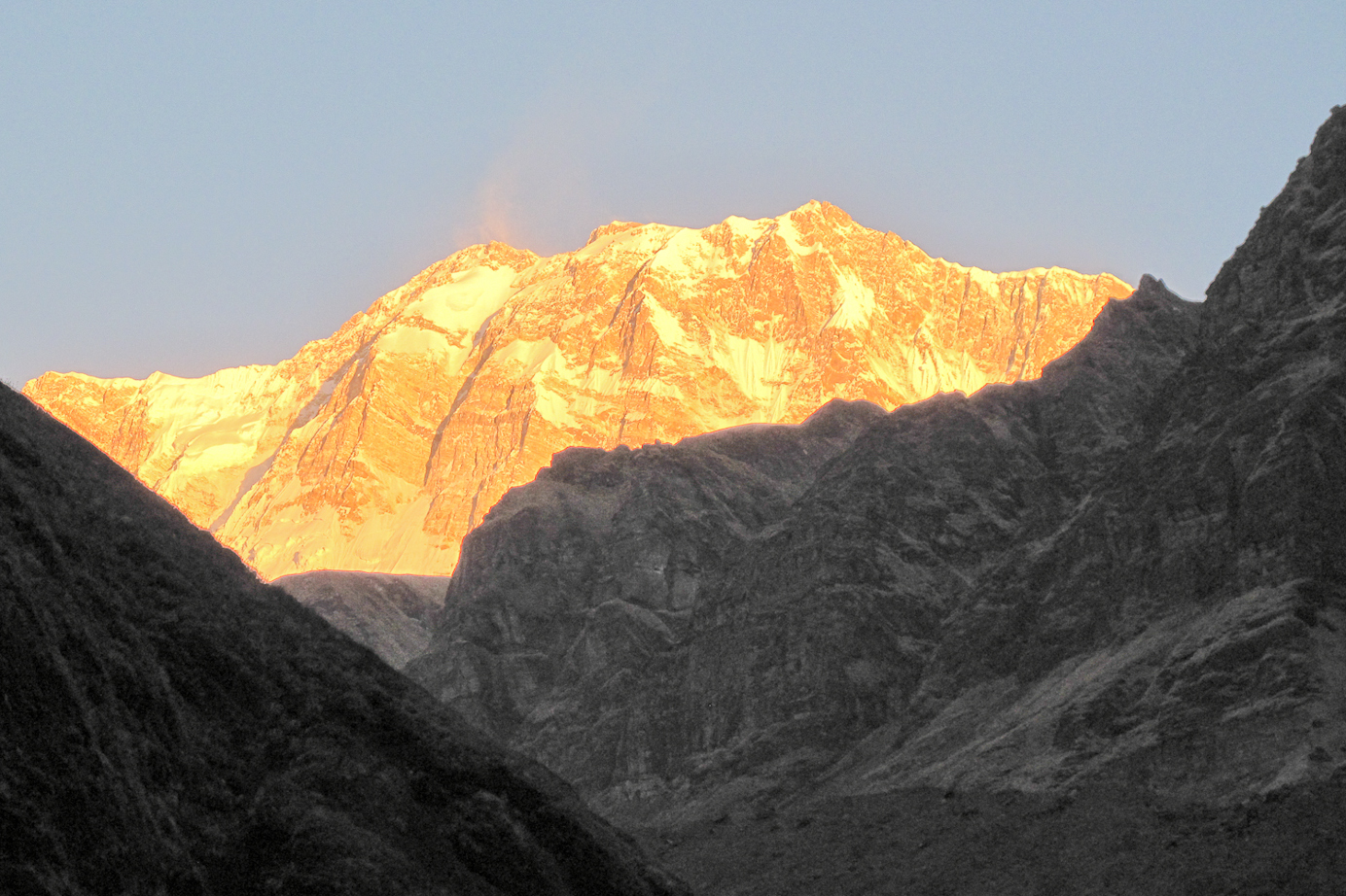 Au matin à 6 heures, nous sautons du lit pour immortaliser le soleil se lever sur le Ganharwa CHuli ( 6250 m)