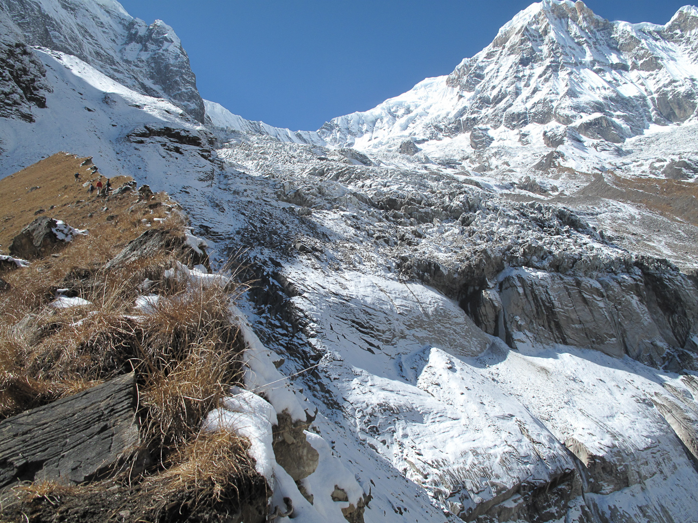 NOus sommes sur le bord de la moraine du glacier Annapurna SUD ( 4200 m environ)