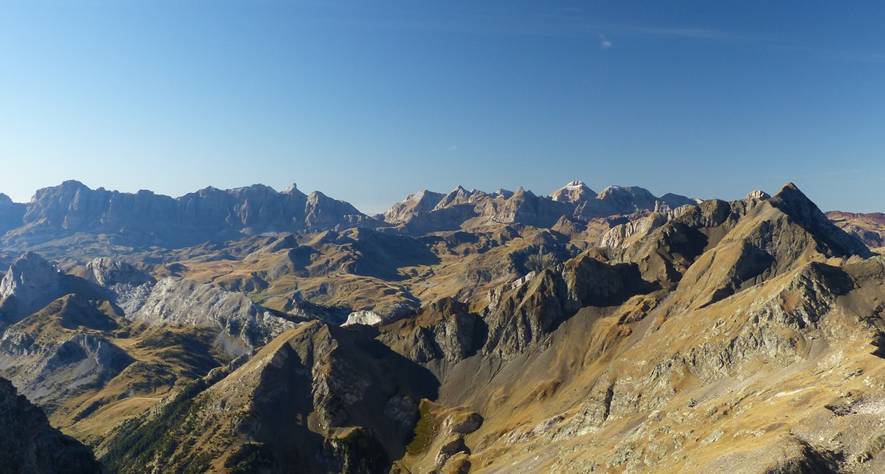 panorama incomparable : le Lurien, le Palas et le Balaïtous sans oublier le lac d'Artouste. On parvient assez vite au dessus du site d'Arrémoulit dominé par le Palas